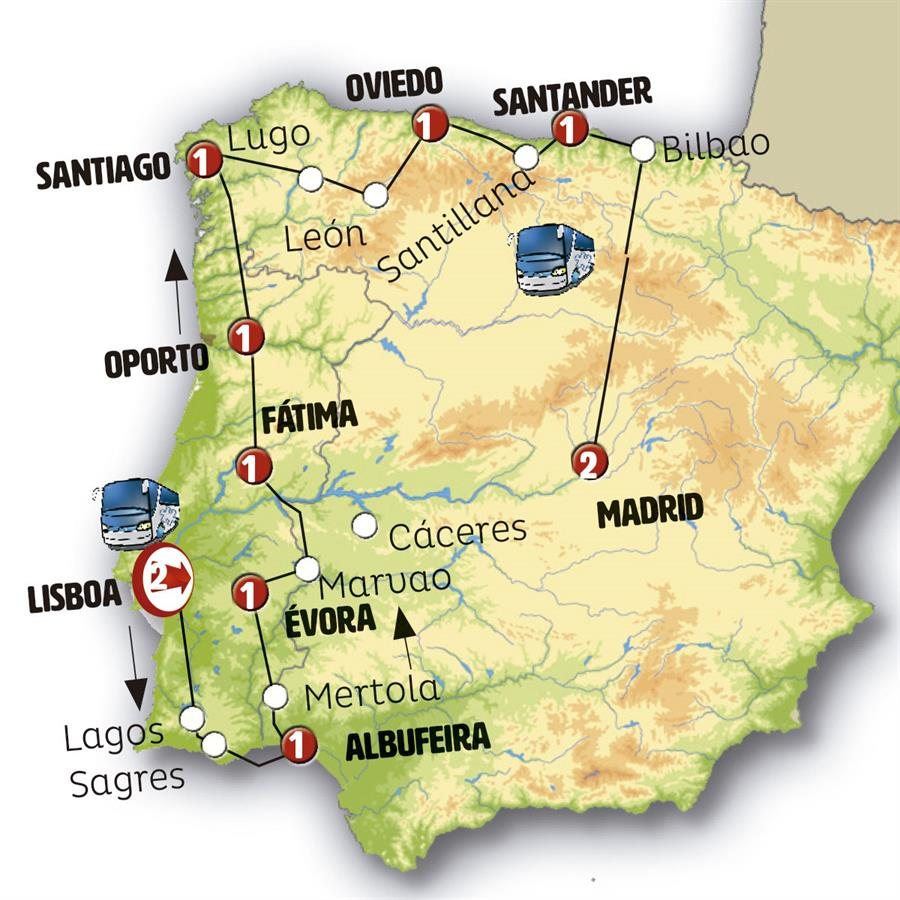 Hoy viajamos entre bonitos paisajes de Alentejo. Paramos en MARVAO, pueblo amurallado muy pintoresco que nos ofrece una fantástica panorámica de la región. Tras ello, conocemos CASTELO DA VIDE con su gran castillo. Tendremos tiempo además para caminar por su antigua judería donde podemos visitar la sinagoga medieval (hoy museo) o por el laberinto de callejuelas de la población. Tras la hora del almuerzo continuamos a TOMAR, ciudad dominada por el Convento de Cristo, antiguo castillo-convento de los templarios, entrada incluida. Antes de llegar a Fátima, pararemos en ALJUSTREL, la aldea donde nacieron los tres pastorcitos que presenciaron a la Virgen. Podremos ver la casa de Lucía. Llegada a FÁTIMA y tiempo libre en el Santuario de Fátima donde, si lo desea, podrá presenciar la procesión de las velas (no se celebra en invierno). Cena incluida.