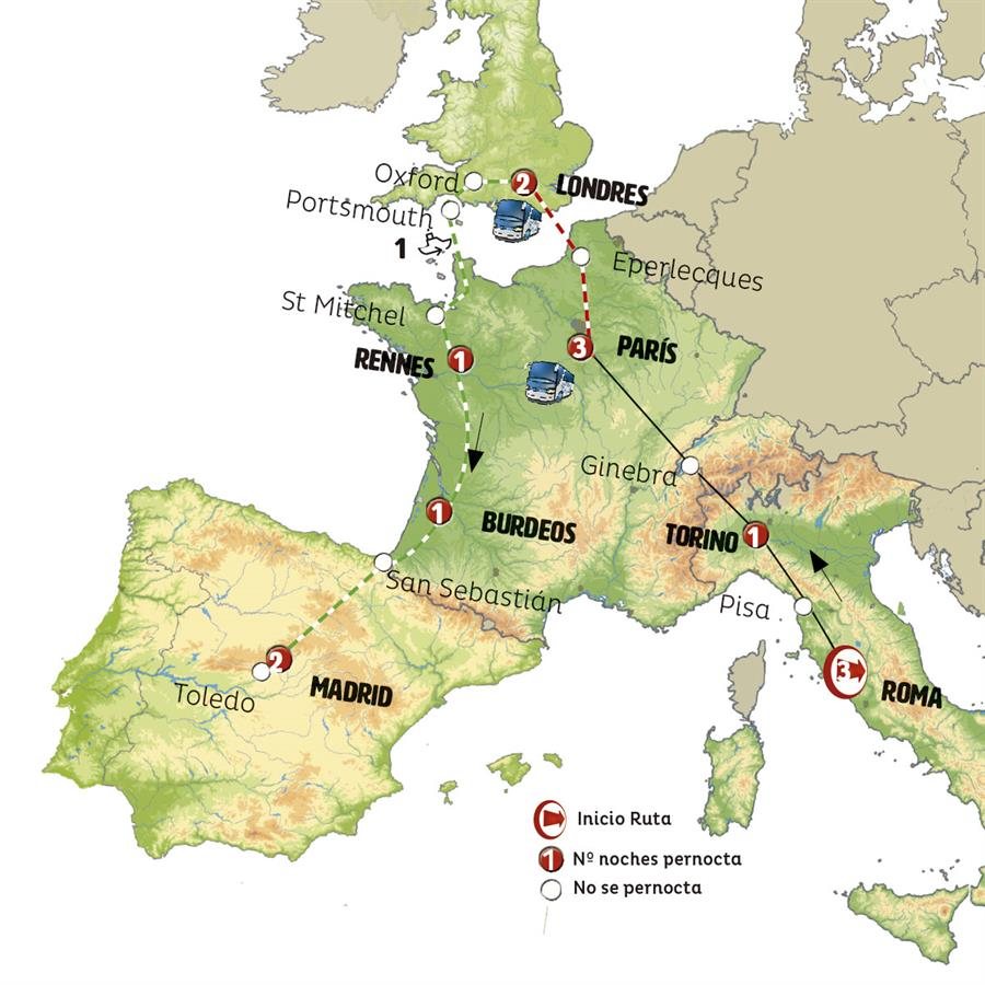 Desembarque en Normandía y continuación al MONT SAINT MICHEL “la maravilla”, tiempo para conocer la ciudad rodeada del mar y la abadía. Posteriormente en Bretaña viajamos a St. MALO, potentes murallas defienden la ciudad, tiempo para almorzar. Ya por la tarde un parada en DINAN, pueblo bretón lleno de encanto donde degustaremos una crepe con bebida. Seguimos ruta hacia RENNES, la capital de Bretaña con su interesante y monumental centro histórico.