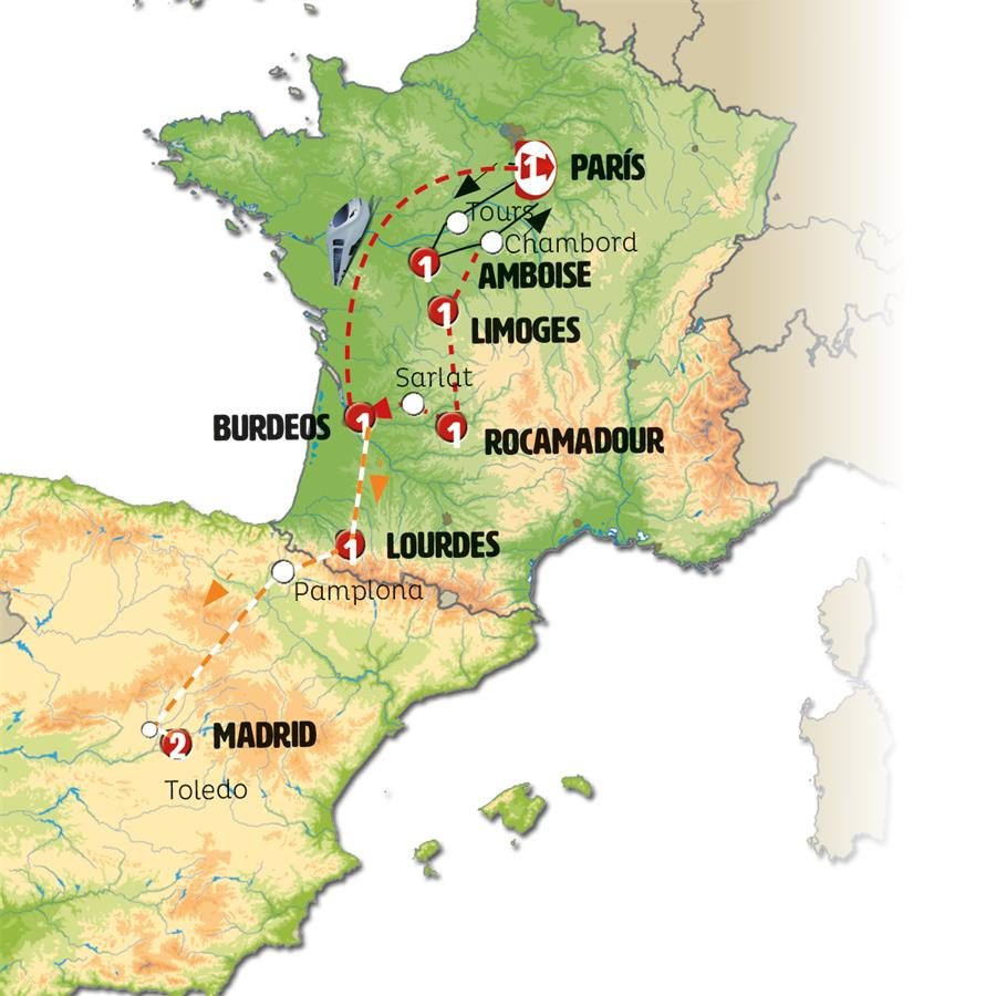 Saldremos de Limoges hacia la Dordoña, otro de los grandes ríos históricos en el centro de Francia. Pocas regiones contienen tantos pueblos llenos de encanto y paisajes inolvidables. Llegamos a LASCAUX, incluiremos la entrada al museo y replica de las cuevas, aprenderemos sobre la prehistoria con las magníficas pinturas rupestres. Tras ello conocemos SARLAT, ciudad patrimonio de la humanidad, conserva un centro histórico renacentista increíblemente bien conservado, tiempo para pasear y almorzar. En BEYNAC conocemos un castillo medieval dominando el río (entrada incluida). ROCAMADOUR, hermosísimo pueblo medieval con importante santuario “colgado” en un barranco; sugerimos baje caminando por el vía crucis y suba con su ascensor. Cena incluida.
