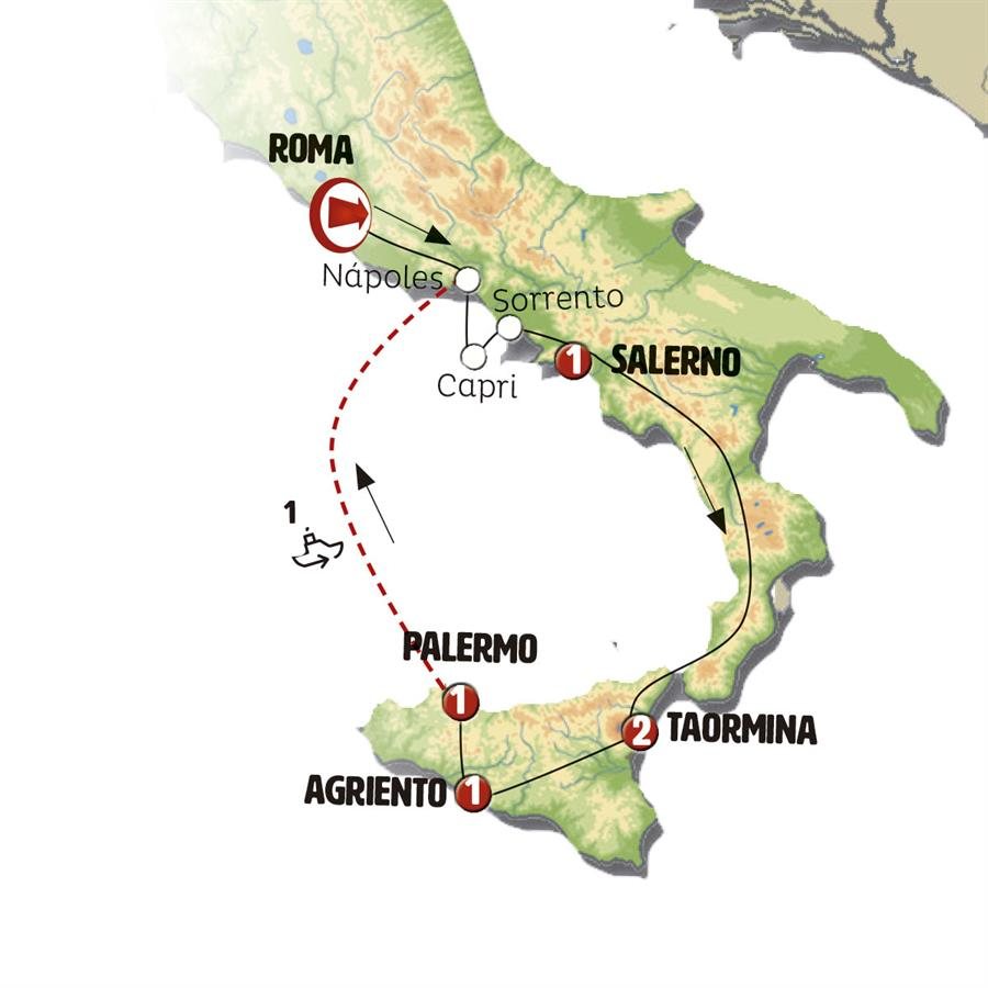 ¡Bienvenidos a su circuito de Europamundo!Salida temprano de Roma, viajamos hacia el sur de Italia. Paso por NÁPOLES en donde embarcamos (billete de barco incluido) a la ISLA DE CAPRI, si lo desean podrán tomar la lancha a la Gruta Blanca o el funicular a Capri capital. Tras la hora del almuerzo embarcamos nuevamente en dirección a SORRENTO, población llena de encanto y vida turística al pie del acantilado. Tiempo para pasear. Continuamos al golfo de Salerno. Alojamiento en SALERNO.