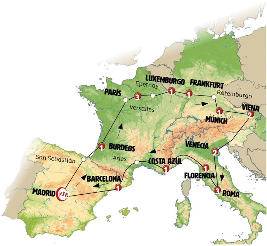 Salimos temprano de MADRID, pasos de montaña, tierras de Castilla. Hermosos paisajes en el País Vasco. SAN SEBASTIÁN, llegada a la hora del almuerzo. Tiempo para almorzar y pasear por el casco histórico o por la hermosa playa de la Concha. Continuación de ruta hacia FRANCIA. BURDEOS, llegada al final de la tarde. Sugerimos un paseo por el centro de esta ciudad declarada Patrimonio de la UNESCO.
