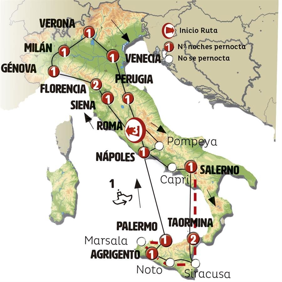Paradas en Ruta: este circuito admite la posibilidad de que usted pueda programar una o más paradas en su viaje, en la ciudad que desee por período de 1, 3, 4 o 7 noches según circuito y fechas de salida. Es fundamental que el circuito tenga salida posterior a la fecha escogida y permita la salida deseada. El suplemento por parada efectuada es de 40 Euros/52 Dólares por persona. Si la parada se realiza para tomar otro circuito del mismo proveedor no se abonará este suplemento.