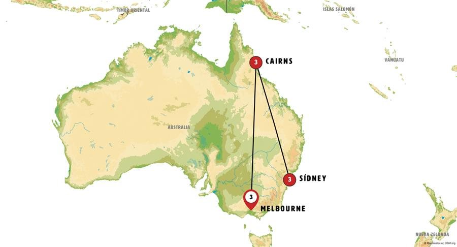Desayuno y traslado al aeropuerto y para tomar el vuelo ( NO incluido) a Cairns.Nota: el vuelo a reservar debe ser el siguiente QF 702 Melbounre 09h20-12h40 Cairns |NonstopTravel time: 3 hr 20 minSe aplican suplementos de traslado de salida de Melbourne y a la llegada de Cairns si el vuelo reservado no es el mismo que el mencionado anteriormente. Llegue a Cairns y encuentro con el guía local de habla hispana.Traslado al hotel y tarde libre.