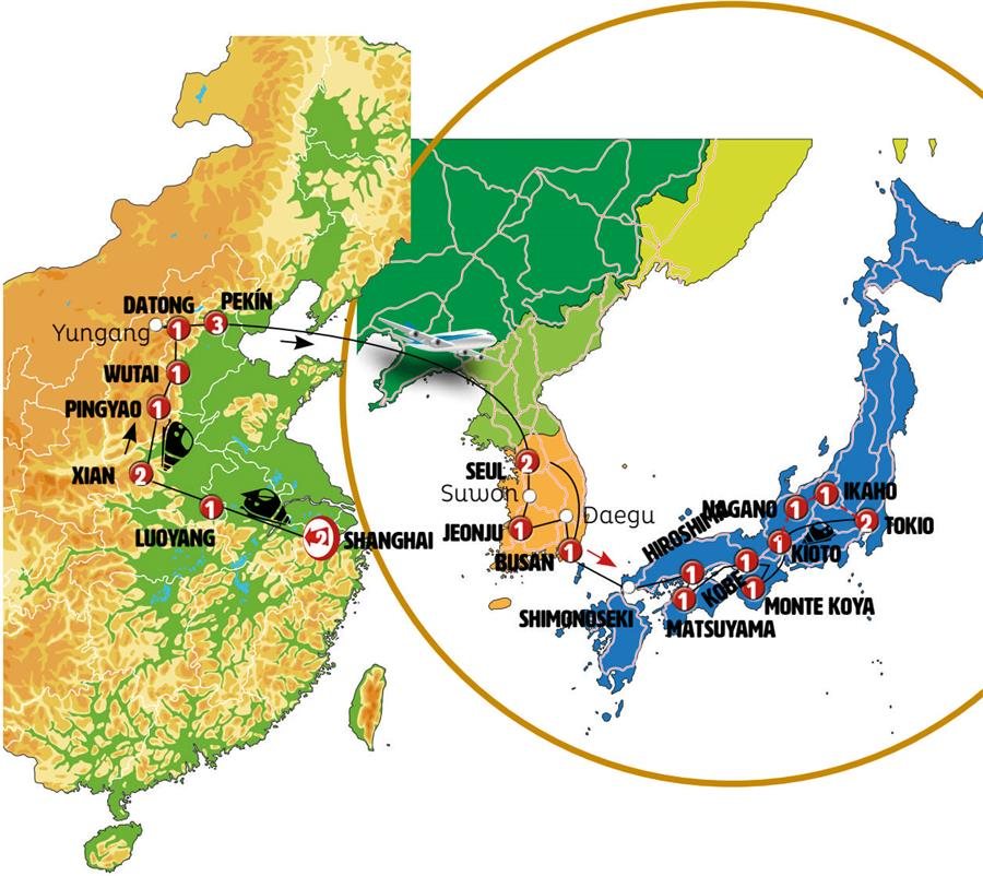 Hoy conoceremos el Palacio de Gyeongbokgung (entrada incluida), impresionante palacio con 600 años de historia, donde asistiremos -si se realiza- a la ceremonia del cambio de guardia. Salimos de Seúl hacia el sur de Corea. Llegamos a SUWON, antigua capital de Corea, conocida por sus impresionantes murallas Patrimonio de la Humanidad. Conoceremos la impresionante muralla con sus fortificaciones y visitaremos Hwaseong Haenggung, el palacio de verano (entrada incluida). Almuerzo incluido. Continuamos ruta a JEONJU, conocemos su fascinante casco histórico (hanok village), con todas sus casitas, sus tiendas tradicionales y galerías de arte.