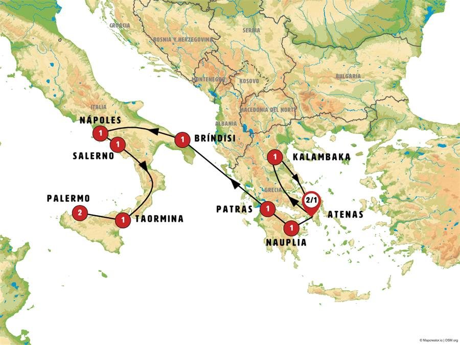 Tras el desayuno tomamos el puente de Rio Antirrio, espectacular puente colgante que conecta el Peloponeso con el continente griego. Viajamos por las regiones de Grecia Central y de Epiro. IGUMENITSA, llegada a esta ciudad portuaria. Tiempo para dar un paseo antes de tomar el moderno ferry (salida prevista a las 14.00 hrs) con el cual cruzamos el Mar Jónico hacia Italia. Llegada a BRINDISI al final del día (previsto a las 21.00 hrs). Alojamiento.