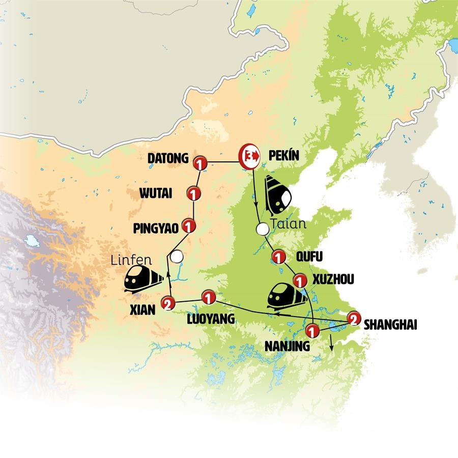 Tras el desayuno traslado a la estación de tren, tomamos uno de los modernísimos trenes de alta velocidad de China. A 300 km/hora, en dos horas llegamos a TAIAN, al pie del monte Taishan, considerada la montaña más sagrada de China. Visitamos el DAI temple, magnifico complejo de templos Taoístas del siglo XI, desde aquí se inicia la ruta de los peregrinos. Almuerzo incluido. Tras ello incluiremos el teleférico que asciende a las “Puertas del cielo” de la montaña sagrada… la última fase hay que hacerla caminando subiendo su empinada escalera entre cientos de peregrinos. Al final de la tarde, en nuestro autobús viajaremos a QUFU, la ciudad de Confucio.