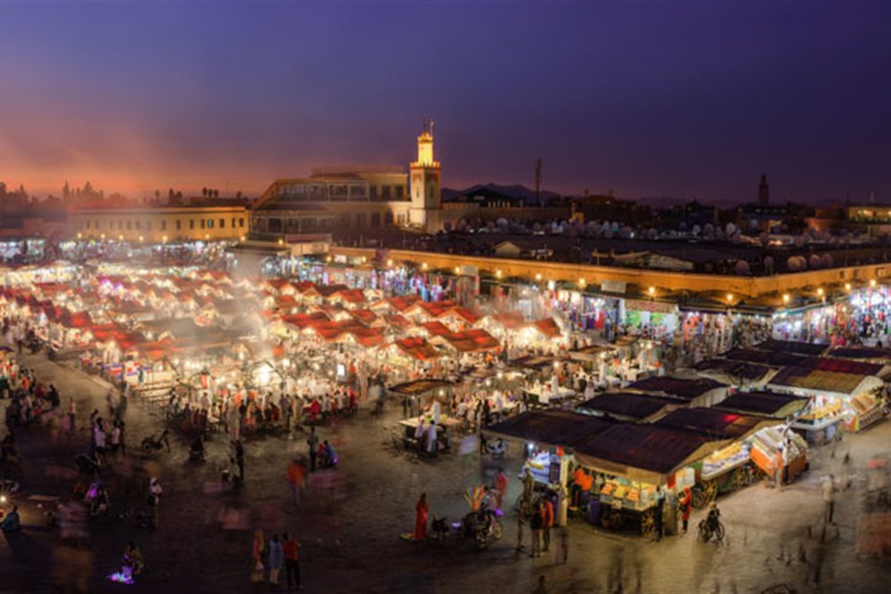 Desayuno. Por la mañana, salida hacia Casablanca donde realizaremos una panorámica a Marrakech acompañados por nuestro guía local. Visitaremos los Jardines de la Menara, los exteriores de la mezquita Koutubía, construida por la dinastía de los almohades y las tumbas de la dinastía Saadiana (entrda no incluida), Visita al palacio Bahia (entrada incluida). Almuerzo en restaurante. Por la tarde continuaremos con la visita en el interior de la Medina, repleta de zocos y mercados con sus diferentes barrios artesanales. Regreso al hotel, cena y alojamiento. Posibilidad opcional decena-espectáculo en el conocido restaurante “Dar el Salam”. Ubicado en un antiguo palacio y utilizado como escenario de películas de Hollywood.
