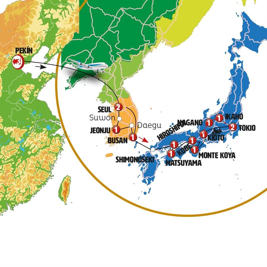 Hoy conoceremos el Palacio de Gyeongbokgung (entrada incluida), impresionante palacio con 600 años de historia, donde asistiremos -si se realiza- a la ceremonia del cambio de guardia. Salimos de Seúl hacia el sur de Corea. Llegamos a SUWON, antigua capital de Corea, conocida por sus impresionantes murallas Patrimonio de la Humanidad. Conoceremos la impresionante muralla con sus fortificaciones y visitaremos Hwaseong Haenggung, el palacio de verano (entrada incluida). Almuerzo incluido. Continuamos ruta a JEONJU, conocemos su fascinante casco histórico (hanok village), con todas sus casitas, sus tiendas tradicionales y galerías de arte.