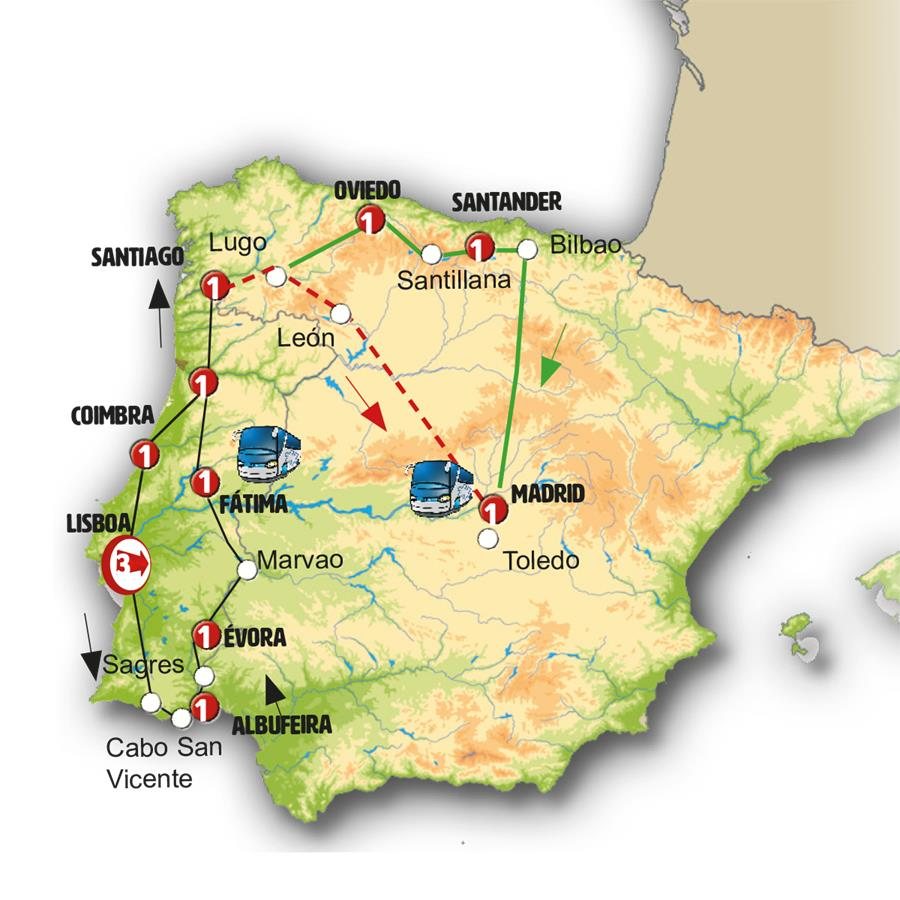Hoy viajamos entre bonitos paisajes de Alentejo. Paramos en MARVAO, pueblo amurallado muy pintoresco que nos ofrece una fantástica panorámica de la región. Tras ello, conocemos CASTELO DA VIDE con su gran castillo. Tendremos tiempo además para caminar por su antigua judería donde podemos visitar la sinagoga medieval (hoy museo) o por el laberinto de callejuelas de la población. Tras la hora del almuerzo continuamos a TOMAR, ciudad dominada por el Convento de Cristo, antiguo castillo-convento de los templarios, entrada incluida. Antes de llegar a Fátima, pararemos en ALJUSTREL, la aldea donde nacieron los tres pastorcitos que presenciaron a la Virgen. Podremos ver la casa de Lucía. Llegada a FÁTIMA y tiempo libre en el Santuario de Fátima donde, si lo desea, podrá presenciar la procesión de las velas (no se celebra en invierno). Cena incluida.