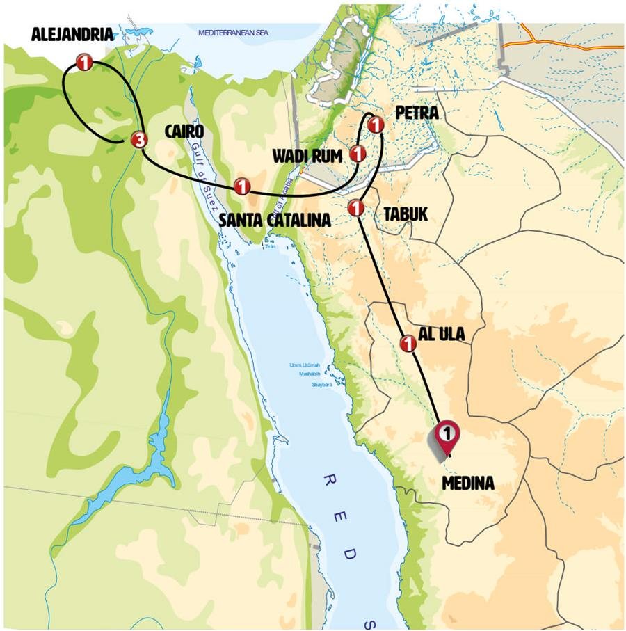 Tras el desayuno salimos a AQABA, la segunda ciudad Jordana, a orillas del Mar Rojo. Un paseo por el centro antes de seguir hacia la frontera de ISRAEL, EILAT, llegada a esta moderna y turística ciudad con sus excelentes playas. Un tiempo de relax para almorzar y pasear ¿se anima a bañarse? Antes de continuar hacia la frontera de EGIPTO. Paso al Sinai, en nuestra ruta fotografiamos la isla del faraón con la potente fortaleza de Saladino. Continuación hacia SANTA CATALINA. Llegada, cena incluida y alojamiento.NOTA: En el paso entre Jordania a Israel y de Israel a Egipto deben abonarse, por parte del viajero, unas tasas de entrada/salida en los diferentes países. Jordania: 15 $ (tasas de salida), Israel: 32 $ (tasa de salida), Egipto: Tasas de entrada a Taba: 25$, Visado de entrada: 45 $ (que en realidad son 25$ de visado + 20$ gastos de tramitación). Tasas aproximadas y sujetas a cambio sin previo aviso por las autoridades del país.Están prohibidos los drones y las cámaras con zoom de 5,5 metros así como otro tipo de cámaras de equipos profesionales ( Europamundo no se responsabiliza de los objetos que puedan ser requisados en las fronteras por parte de las autoridades de los países )NOTA IMPORTANTE: Debido a circunstancias excepcionales o a un número reducido de participantes, puede ocurrir que crucemos directamente de Jordania a Egipto en barco, tomando el FERRY AQABA- TABA con una duración de algo más de dos horas. Durante la travesía en ferry, no habrá asistencia de ningún guía.