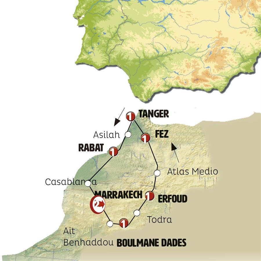 Salimos a cruzar el Atlas, elevadas cumbres frecuentemente nevadas nos saludan despidiendo el palmeral de Marrakech. Pequeños pueblos bereberes se cuelgan en los abismos. Conocemos el poblado fortificado de AIT BEN HADU, lugar donde se han rodado numerosas películas. Tanto en esta etapa como en la de mañana recorreremos los llamados paisajes bíblicos. Tiempo en OUARZAZATE ciudad con impresionante Kasbah. Continuamos hacia el Valle de las Rosas. BOUMALNE DADES. Cena incluida. Nota: En muy raras ocasiones (durante el invierno) pueden existir problemas de nieve en los pasos del Atlas; si la carretera por este motivo está cortada, se haría programa alternativo (llegando o no al Sahara según pasos alternativos de montaña cerrados).