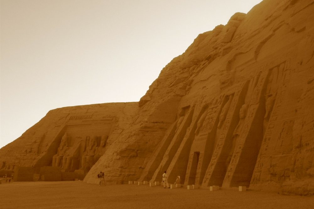 Desayuno y desembarque. Salida por carretera hacia Abu Simbel: junto con las pirámides de Guizeh, se podría decir que son los templos que no se deben dejar de visitar en un viaje a Egipto. Llegada y visita de los templos que se encuentran a unos 280 km al sur de Asuán, en lo que en la época faraónica se llamó región de Nubia. La construcción del templo mayor se atribuye al faraón Ramsés II en el año 1264 a. de C., destacando también el otro templo inferior excavado en honor a su esposa preferida, la reina Nefertari. Durante siglos los templos de Abu Simbel estuvieron abandonados, hasta que fueron descubiertos en 1813 por el suizo J. L. Burckhardt, pasando a entrar en su interior en 1817 el explorador italiano Giovanni Belzoni. Con la construcción de la presa de Asuán en 1964 el templo de Ramsés II y el de Nefertari se cortaron pieza a pieza y se reconstruyeron en un lugar próximo a 65 m más alto, formando dos inmensas cúpulas de hormigón armado.