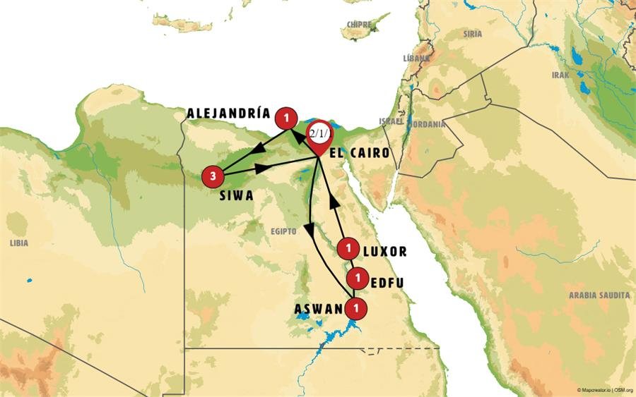 Desayuno. Salimos temprano hacia ALEJANDRÍA. Llegada. Incluimos city tour de la ciudad. Comenzaremos recorriendo el puerto alejandrino para visitar la Ciudadela de Qaitibay. Este complejo defensivo fue construido en el siglo XV por el sultán Qaitibay, justo en el mismo lugar donde se alzaba el famoso Faro de Alejandría. A continuación visitaremos las Catacumbas de Kom el Shoqafa. Los bajorrelieves del yacimiento, uno de los más destacados de Alejandría, muestran la fusión entre la cultura egipcia y la grecorromana. Muy cerca de estas catacumbas hallaremos la Columna de Pompeyo, situada en el lugar donde se ubicaba el templo dedicado al dios greco-egipcio Serapis. Almuerzo incluido. Posteriormente, nos acercaremos hasta uno de los edificios modernos más relevantes de la ciudad: la Nueva Biblioteca de Alejandría. Surgida como homenaje al antiguo espacio que reunía miles de papiros y pergaminos, que constituye uno de los espacios culturales más importantes del Mediterráneo oriental. Alojamiento.