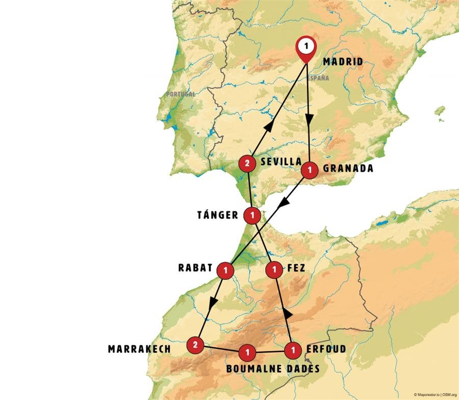 Salimos a cruzar el Atlas, elevadas cumbres frecuentemente nevadas nos saludan despidiendo el palmeral de Marrakech. Pequeños pueblos bereberes se cuelgan en los abismos. Conocemos el poblado fortificado de AIT BEN HADU, lugar donde se han rodado numerosas películas. Tanto en esta etapa como en la de mañana recorreremos los llamados paisajes bíblicos. Tiempo en OUARZAZATE ciudad con impresionante Kasbah. Continuamos hacia el Valle de las Rosas. BOUMALNE DADES. Cena incluida. Nota: En muy raras ocasiones (durante el invierno) pueden existir problemas de nieve en los pasos del Atlas; si la carretera por este motivo está cortada, se haría programa alternativo (llegando o no al Sahara según pasos alternativos de montaña cerrados).