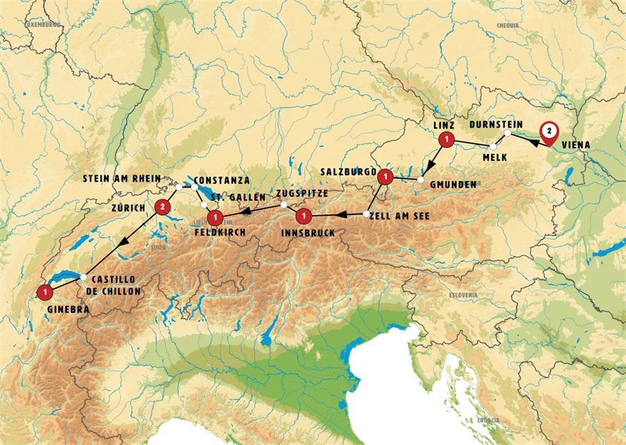 Hoy disfrutaremos de un día de paisajes extraordinarios. Iremos a ZUGSPITZE en la frontera entre AUSTRIA y ALEMANIA. Subimos a la cumbre de la montaña más alta de Alemania con el teleférico (incluido). En días buenos, podemos ver una panorámica de los picos nevados de las montañas en 4 países. Tras ello viajaremos a REUTTE, caminaremos por el “puente tibetano” mas largo de Europa (entrada incluida) entre paisajes extraordinarios. Posteriormente vamos FELDKIRCH, junto a la frontera con Suiza, Liechtenstein y Alemania; encantadora ciudad amurallada con hermoso casco medieval y castillo. Tiempo libre.