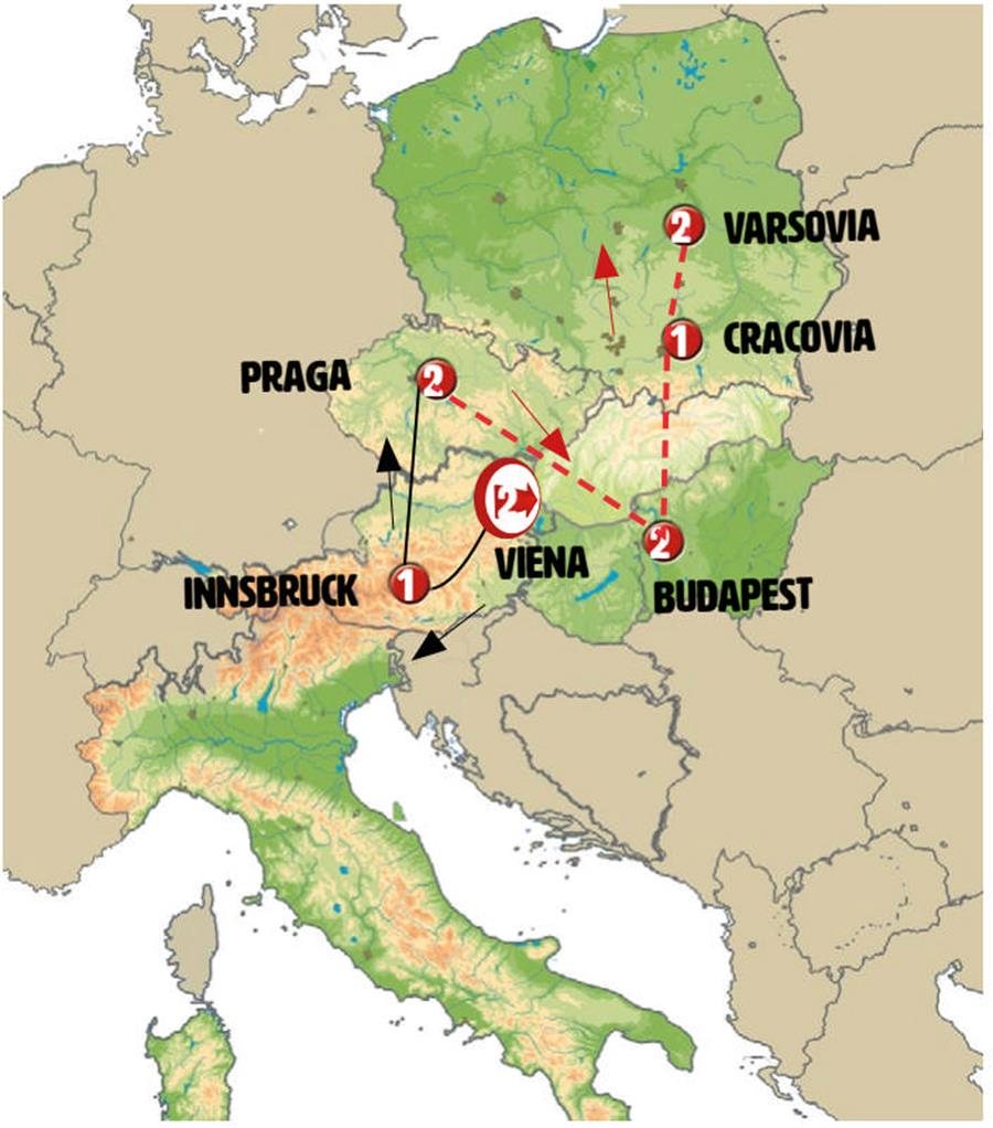 Paradas en Ruta: este circuito admite la posibilidad de que usted pueda programar una o más paradas en su viaje, en la ciudad que desee por período de 1, 3, 4 o 7 noches según circuito y fechas de salida. Es fundamental que el circuito tenga salida posterior a la fecha escogida y permita la salida deseada. El suplemento por parada efectuada es de 40 Euros/52 Dólares por persona. Si la parada se realiza para tomar otro circuito del mismo proveedor no se abonará este suplemento.