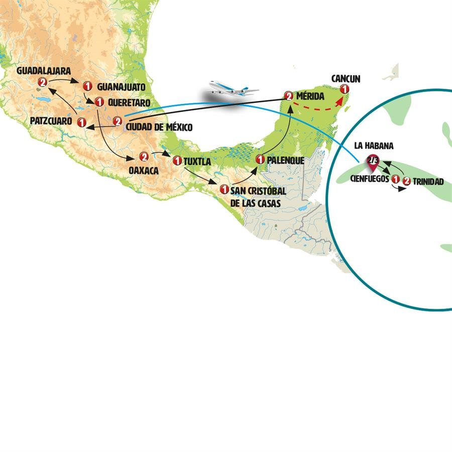 Tras el desayuno traslado al aeropuerto. Tomamos vuelo regular (incluido, hora variable) hacia Ciudad de México. Llegada a CIUDAD DE MÉXICO. Traslado al hotel y tiempo libre. Recibirá información sobre esta parte de su viaje en la tarde, o bien, a través de los carteles informativos localizados en la recepción del hotel.