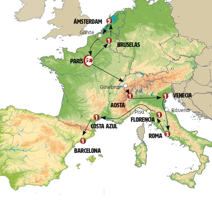 Madrugamos, tenemos una hermosa etapa. Viajamos hacia SUIZA. A la hora del almuerzo llegamos a GINEBRA, tiempo para almorzar y pasear en esta bonita ciudad Suiza a orilla de su lago. Por la tarde continuamos ruta hacia las más altas cumbres de Europa: los Alpes. Atravesamos los Alpes por el túnel bajo del Mont Blanc, uno de los más largos de Europa. Bonitos paisajes alpinos en Italia siguiendo el valle de Aosta. Llegada al final del día a la región de AOSTA.