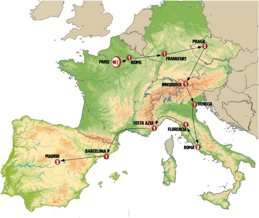 Traslado al centro. Puede realizar opcionalmente un crucero por el río Sena y paseo por el Barrio Latino. A las 17 horas saldremos de PARIS hacia la región del Champagne. REIMS, llegada al final de la tarde, podremos pasear por esta histórica ciudad y conocer su bellísima catedral gótica.