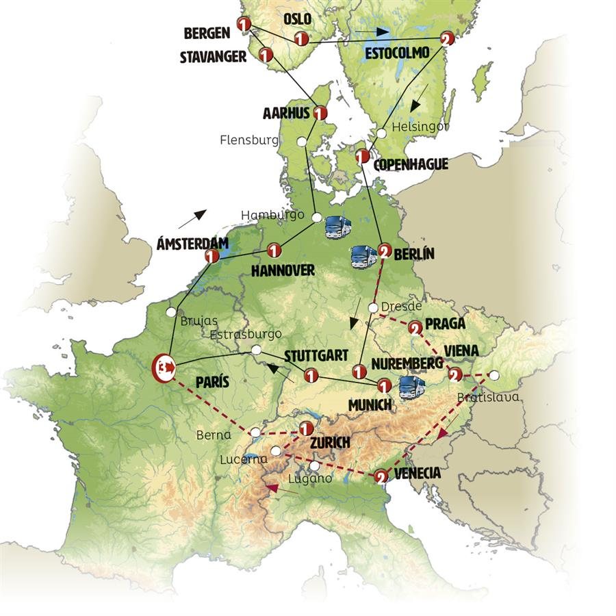 Viajamos entre bosques hacia DRESDE, ciudad que gracias a su excepcional patrimonio arquitectónico y artístico se ha convertido en uno de los centros turísticos principales de Alemania. Tiempo para almorzar y conocer sus palacios. Posteriormente pasamos a la REPÚBLICA CHECA. PRAGA, llegada a media tarde, incluimos visita panorámica de esta ciudad, una de las más hermosas de Europa, destaca el Castillo, la Plaza del Ayuntamiento y el hermoso Puente de Carlos. Al final del día, podrá pasear por el pintoresco centro, repleto de cervecerías tradicionales donde podrá probar auténticas cervezas locales.Nota: en ocasiones, la visita de Praga se realizará el domingo.