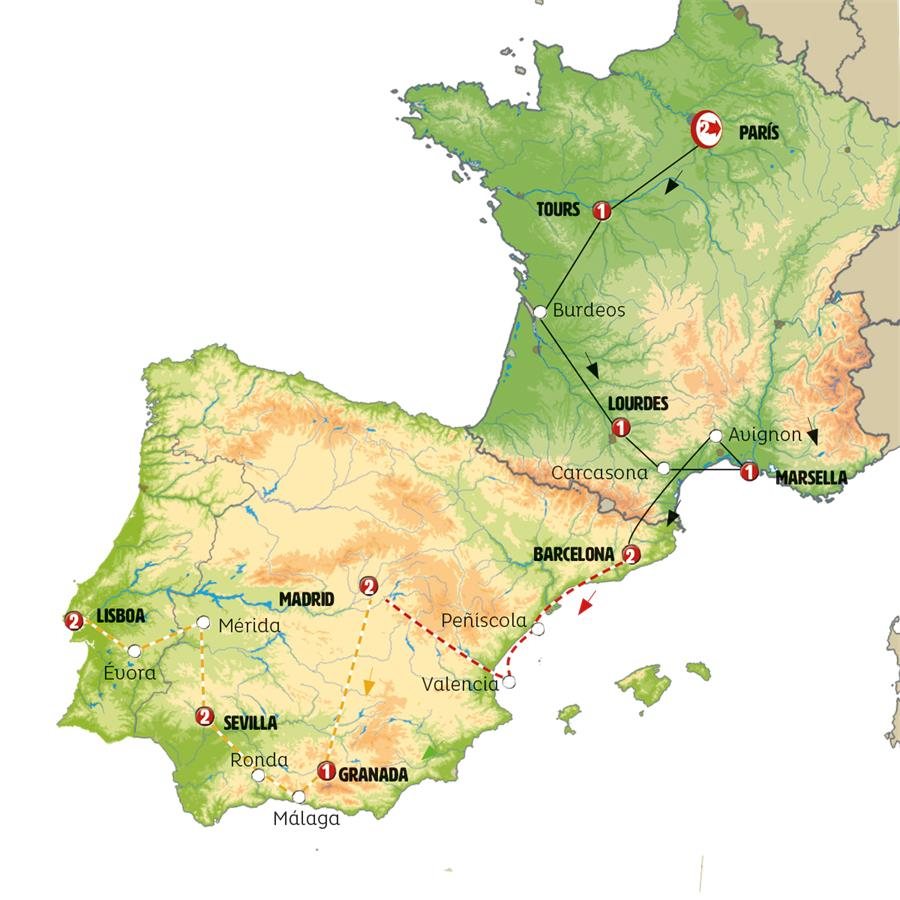 En la etapa de hoy descubrimos la Provenza. En AIX EN PROVENCE nació el pintor Paul Cezanne, tiempo para pasear en su magnífico centro histórico con sus pequeñas calles, fuentes y plazas pintorescas. Continuamos a AVIGNON, Un tiempo para caminar y almorzar en esta ciudad amurallada a orillas del Ródano que fue sede de los papas católicos, convirtiéndose en la segunda Roma, hasta que en 1791 se integró a Francia. Su inmenso Palacio de los Papas nos desvela su pasado. Continuamos a PONT DU GARD, entrada incluida, al impresionante acueducto romano, Patrimonio Mundial de la UNESCO, uno de los monumentos romanos más famosos y mejor conservados del mundo. Seguimos nuestra ruta hacia Cataluña. BARCELONA, llegada al final del día.