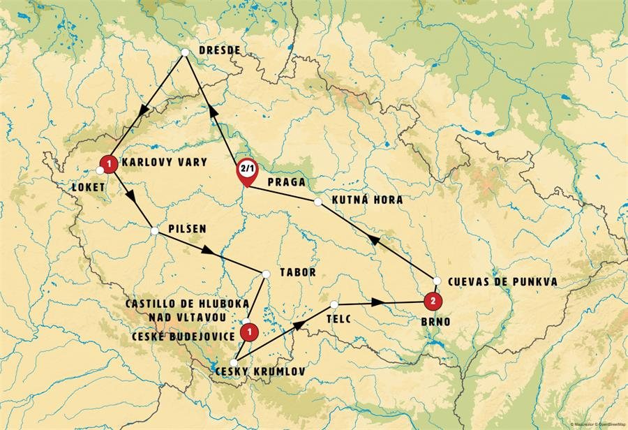 Saldremos de Praga tras el desayuno viajamos hacia Alemania. Muy cerca de la frontera se encuentra DRESDE, conocida como la "Florencia del Elba", es una de las ciudades más bellas de Alemania, famosa por su impresionante arquitectura barroca. Tras un tiempo para pasear y almorzar seguiremos hacia la región de Bohemia en Chequia. Conoceremos LOKET, pintoresca pequeña ciudad medieval rodeada casi por completo por un meandro del río Ohre. Su imponente castillo del siglo XII domina el paisaje y ofrece vistas espectaculares. Sus calles empedradas y su ambiente histórico la convierten en una joya poco conocida. Tras ello llegaremos a KARLOVY VARY, la ciudad balneario más famosa de la República Checa, célebre por sus aguas termales y elegantes edificios neobarrocos. Traslado al hotel y cena incluida.