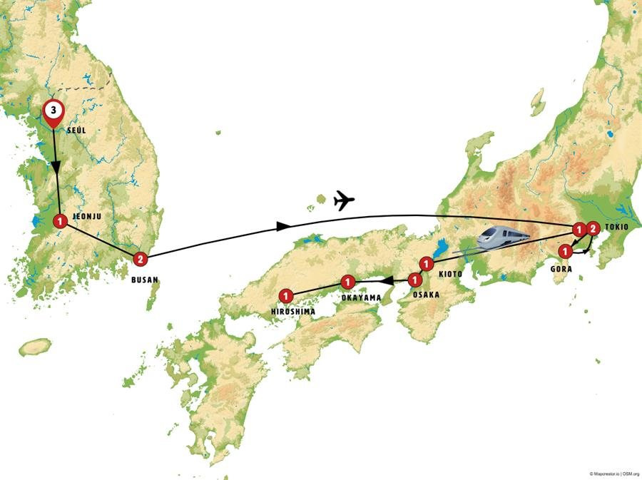 Saldremos hacia HIMEJI, incluiremos la entrada a su inmenso castillo que nos muestra la arquitectura de los castillos Japoneses. Almuerzo incluido en restaurante local. Continuamos OKAYAMA, visitaremos Korakuen, uno de los mas hermosos jardines de Japón, con sus lagos, cascadas y tradicionales casa de té. A través de un puente peatonal sobre el rio podemos ir al Castillo de Okayama, fortificación japonesa del siglo XVI en Okayama. Reconstruido en 1966, ya que el complejo fue destruido durante un bombardeo en la Segunda Guerra Mundial (visita interior castillo no prevista). Tras la visita alojamiento y tiempo libre en la ciudad, activa capital provincial de algo más de 700 000 habitantes.Nota: En algunas fechas puntuales, podremos ser alojados en la ciudad de FUKUYAMA o KURASHIKI. La visita de Kurashiki podrá ser realizada este mismo día por la tarde.