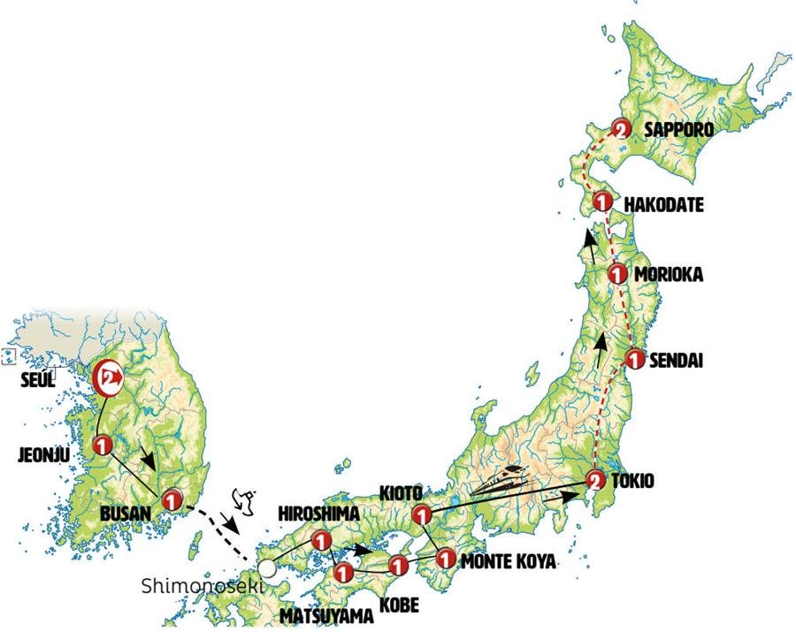 En una región de hermosos paisajes viajamos hacia HIROSAKI, donde, desde el exterior, veremos su castillo ubicado en un hermoso parque donde florecen en primavera mas de 2500 cerezos. Tras ello seguimos a AOMORI, capital provincial en la bahía de Mutsu. Conoceremos el Museo Nebuta, aprenderemos sobre la tradición japonesa de fiestas que nos recuerdan los carnavales, con sus carros pintados y luminosos. Almuerzo incluido en un restaurante local.Embarcamos posteriormente en ferry para cruzar hacia la isla de HOKKAIDO, podrá disfrutar de una hermosa travesía de algo más de tres horas y media. Llegada a HAKODATE de hermoso centro histórico donde se aprecia la influencia de otras culturas (iglesia ortodoxa rusa, iglesias cristianas).