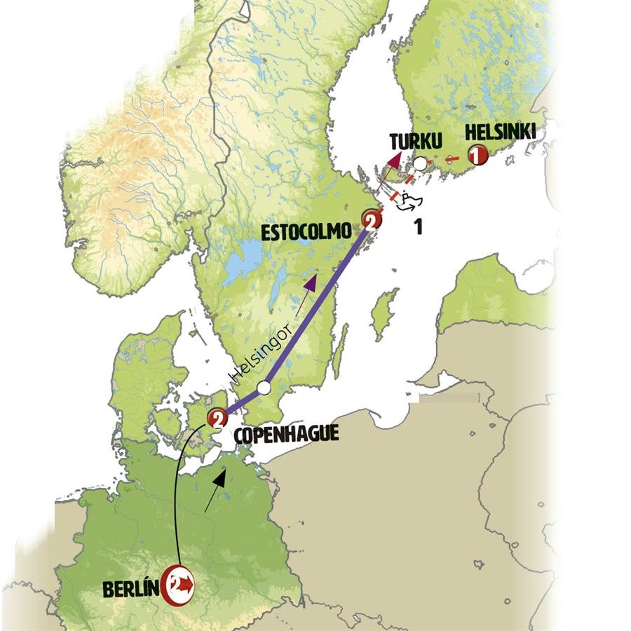 Saldremos hacia HELSINGOR, la ciudad de Hamlet, en la que destaca su gran Castillo de Kronborg. Tras ello un pequeño ferry (corta travesía de 20 minutos) nos lleva a Suecia. Viajamos entre bonitos paisajes de grandes lagos y densos bosques. JONKOPING, tiempo para almorzar en esta moderna y pequeña ciudad ubicada junto a su gran lago. Continuación a VADSTENA, pintoresca población junto al lago con sus casas antiguas y su gran castillo del siglo XIV que fue convertido en monasterio. Continuación a ESTOCOLMO, llegada al final del día a la capital de Suecia, hermosa ciudad en el archipiélgao del Mar Báltico conectadas entre sí por numerosos puentes y transbordadores y conocida por su rica historia, impresionante arquitectura y su combinación de modernidad y tradición.