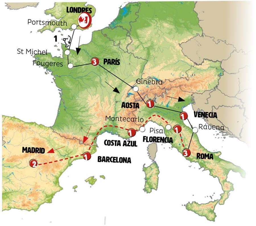 Desembarcamos en NORMANDÍA, viajamos hacia el MONT SAINT MICHEL, extraordinario lugar con su abadía rodeada por el mar. Tras este punto conocemos FOUGERES, pequeña ciudad de Bretaña a los pies de la mayor fortaleza de Europa, tiempo para pasear por sus calles adoquinadas medievales y almorzar. Continuamos a CHARTRES, una parada para admirar su magnífica catedral gótica. Continuamos hacia PARÍS. Llegada sobre las 20.30 hrs.