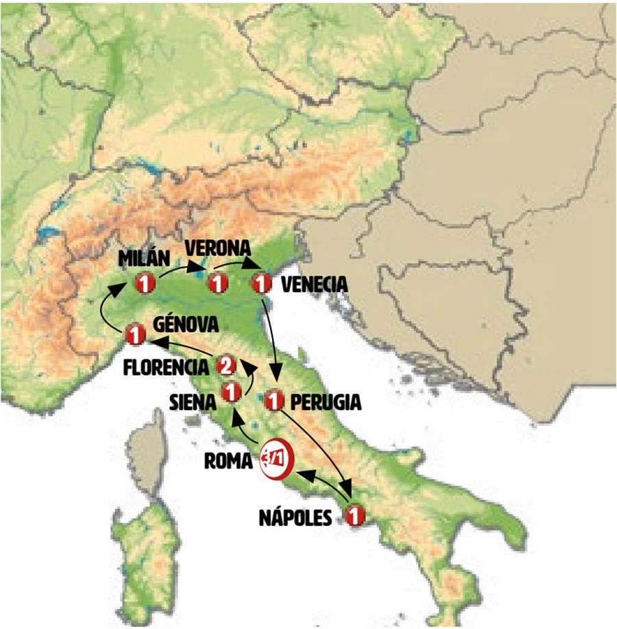 Viajamos a PISA, incluimos un trencito desde el estacionamiento turístico para desplazarnos hasta el recinto monumental Campo de los Milagros donde se encuentra la popular Torre Inclinada. Tras ello vamos a conocer la Costa Ligur que presenta algunos de los rincones marítimos más bonitos de Europa. CINQUE TERRE ha sido declarado Patrimonio de la Humanidad por la UNESCO, cinco poblaciones de fama internacional, casi aisladas por carretera que viven en la actualidad principalmente del turismo. Llegamos en tren, billete incluido a uno de sus encantadores poblados (normalmente VERNAZZA, pero en fechas de mucho turismo podrían ser Manarola o Corniglia, poblaciones muy similares algo menos masificadas) Tiempo para almorzar. Continuamos en tren hasta LEVANTO donde nos espera el autocar para continuar a GENOVA. Tiempo libre en su centro nos recuerda que fue una república pujante en la Edad Media.Nota: El tren a Cinque Terre es un servicio regular de cercanías, no es un servicio turístico. En ocasiones, por exceso de turismo, (existen largas esperas para abordar el trenecito turístico ya que los trenes viajan llenos y no es posible reserva plaza, pudiendo en algunos casos hacerse el viaje sin asiento –de pie).