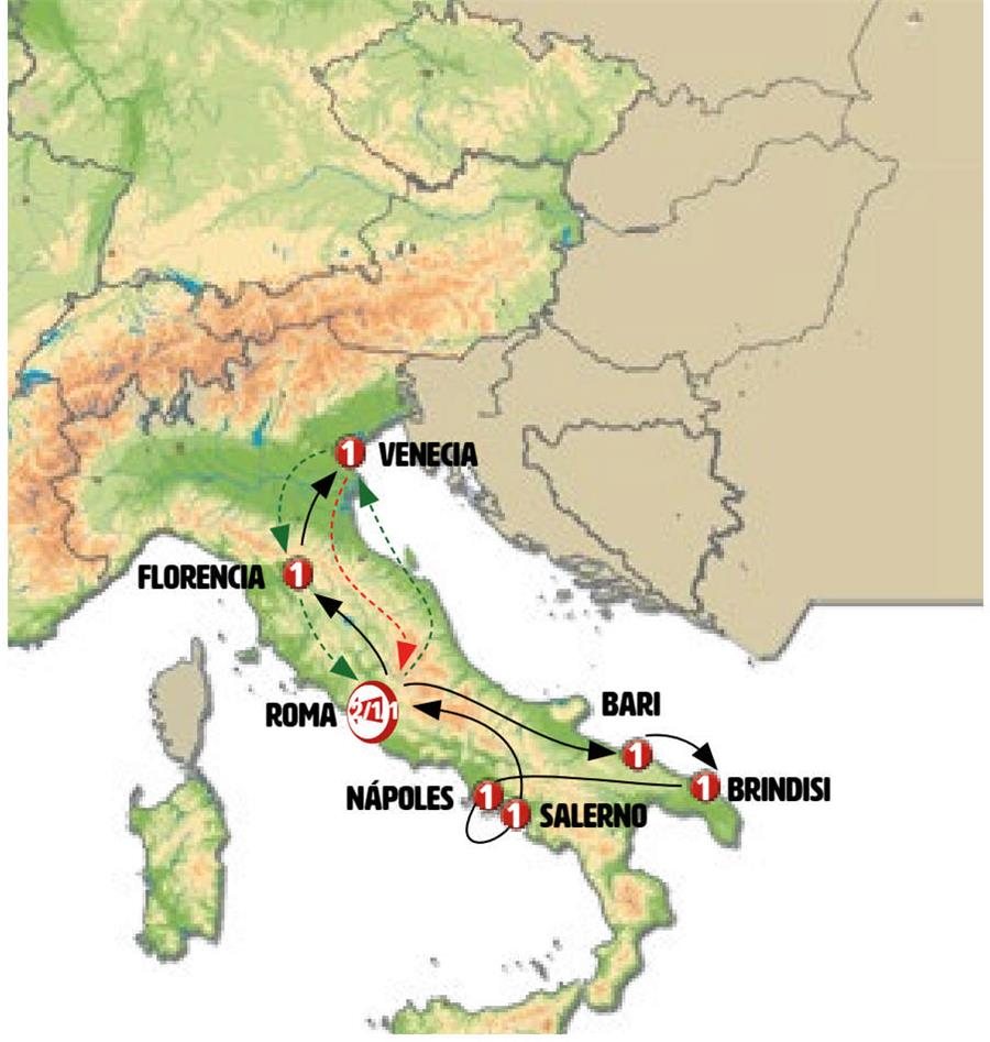 Hoy viajamos hacia el mar Adriatico, los paisajes son magníficos atravesando la cordillera de los Apeninos. Parada para conocer la ABADÍA SAN GIOVANNI IN VENERE (entrada incluida), bonita abadía del s. XI construida sobre las ruinas de un antiguo templo romano. Continuamos a TERMOLI, encantadora ciudad junto al mar cuya la playa esta dominada por el casco antiguo amurallado y donde destaca su castillo del siglo XIII y su catedral románica. Tiempo para almorzar y pasear. Llegada a BARI, ciudad portuaria habitada desde antes de la época romana donde tenemos podremos disfrutar y pasear por el casco antiguo. Sus calles estrechas, sus iglesias, su animada vida hacen de ella una ciudad muy especial con todo el sabor del sur de Italia.