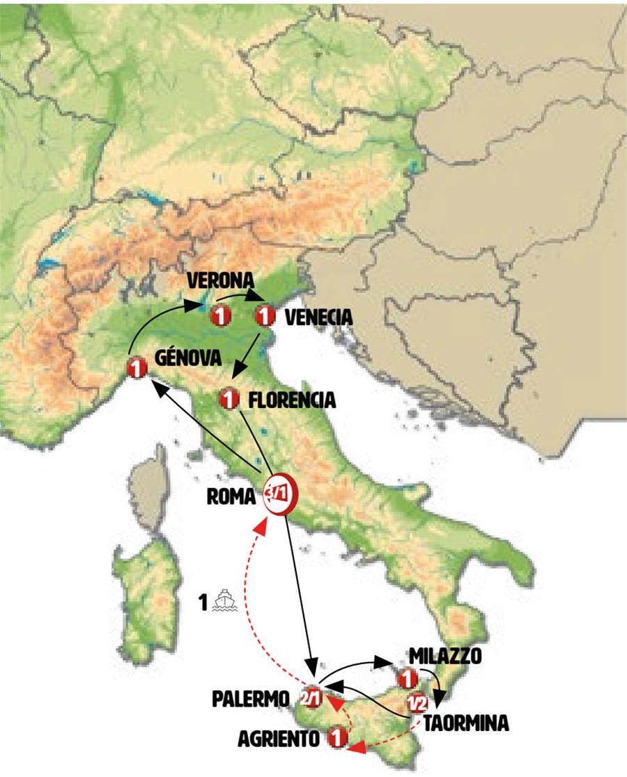 Viajamos a PISA, incluimos un trencito desde el estacionamiento turístico para desplazarnos hasta el recinto monumental campo de los Milagros donde se encuentra la popular Torre Inclinada. Almuerzo incluido. Tras ello viajamos a SANTA MARGARITA DE LIGURE en donde embarcamos hacia PORTOFINO, uno de los lugares más exclusivos de Europa, hermoso paseo por el mar y tiempo libre. Continuamos a GÉNOVA. Su centro nos recuerda que fue una república pujante en la Edad Media. Nota: Del 30 de mayo al 2 de noviembre no está permitido el acceso de autobuses turísticos a Santa Margarita Ligure. En ese período, la parada se realizará en RAPALLO, otro bellísimo destino costero de la región de Liguria, desde donde embarcaremos hacia Portofino.Nota adicional: Por condiciones meteorológicas adversas o durante el invierno, la travesía marítima hacia Portofino (ya sea desde Santa Margarita o desde Rapallo) podría no estar operativa por las condiciones del mar.