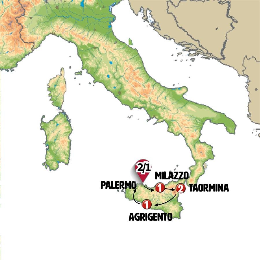 Saldremos de Palermo siguiendo la costa del mar Tirreno. Bonitos paisajes. Conocemos en el interior de la isla CASTELBUONO, pequeña y pintoresca población entre montañas que nos muestra la tranquilidad de los pueblos del interior, con sus murallas, castillo y pintorescas calles del centro. Tras ello, la encantadora ciudad costera de CEFALU. Su catedral Normanda con su arquitectura original y mosaicos ha sido declarada Patrimonio de la Humanidad, el centro histórico es de gran belleza con sus pequeñas callejuelas, sus vistas al mar y su vida comercial y turística. Tras la hora del almuerzo, seguimos nuevamente por la costa hacia TINDARIS, en lo alto de una montaña, dominando el mar, se levanta el Santuario de Tindari, lugar de peregrinación famoso, con su imagen de la virgen negra y sus grandes vistas. Muy próximo al santuario, se hallan los restos de la antigua polis griega, Continuamos a MILAZZO, ciudad portuaria con bastante vida frente a las volcánicas islas Eolias.