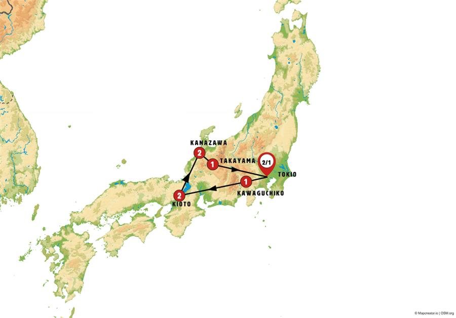 Tras el desayuno salimos a HIDA FURUKAWA, paseamos por su casco antiguo. Su fiesta-festival ha sido declarado por la Unesco Patrimonio inmaterial de la humanidad, con sus grandes tambores y carrozas bellamente decoradas. Incluiremos la entrada al museo que nos habla de la fiesta y nos muestra las carrozas, vestidos y tambores que se utilizan. Continuamos nuestra ruta cruzando los Alpes japoneses, con sus paisajes nevados gran parte del año. MATSUMOTO, llegada a esta turística ciudad donde visitaremos su impresionante castillo conocido como el “castillo de los cuervos” por su color negro y que data del siglo XVI. Tras ello tiempo libre para almorzar y pasear. A media tarde saldremos de regreso hacia TOKIO, llegada al final del día.