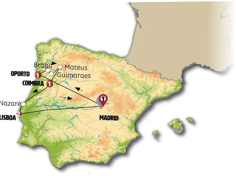 ¡Bienvenidos a su circuito de Europamundo!Salida temprano de Madrid hacia Castilla. Efectuamos una breve parada en el Mirador de los 4 postes con su vista sobre las magníficas murallas de ÁVILA. Casi en la frontera con Portugal paramos en CIUDAD RODRIGO, un paseo para conocer su catedral, muralla y calles medievales. Continuamos hacia Portugal OPORTO. Tras la llegada realizaremos una travesía de 50 min por el río Duero en un "Rabelo", embarcación tradicional portuguesa, para descubrir la ciudad desde la bella ribera del río. Tiempo libre posteriormente para pasear por el animado barrio medieval de la Ribeira, de angostas calles bordeadas de antiguas casas de mercaderes y cafés antes de dirigirnos al hotel.Nota: Si el número de pasajeros entre Madrid y Oporto es muy reducido podrá realizarse este tramo en avión, anulándose en este caso la parada en Ciudad Rodrigo.