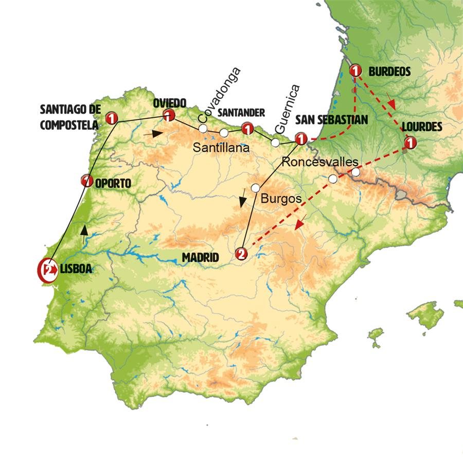 Viajamos hacia los Picos de Europa. Entre hermosos paisajes conocemos la Basílica de Covadonga. Continuamos ruta siguiendo el mar hacia SANTILLANA, uno de los pueblos más bonitos de España con su intacto casco medieval. En sus proximidades conocemos el Museo de LAS CUEVAS DE ALTAMIRA, (entrada incluida). Posteriormente viajamos a SANTANDER, la capital regional, ciudad marítima con impresionantes vistas entre montañas y playas. Incluimos una visita panorámica con guía local en la que podremos descubrir esta elegante ciudad costera y su hermosa bahía. Nota: Desde abril a mediados de octubre, por alta ocupación algunos grupos serán alojados en Bilbao.