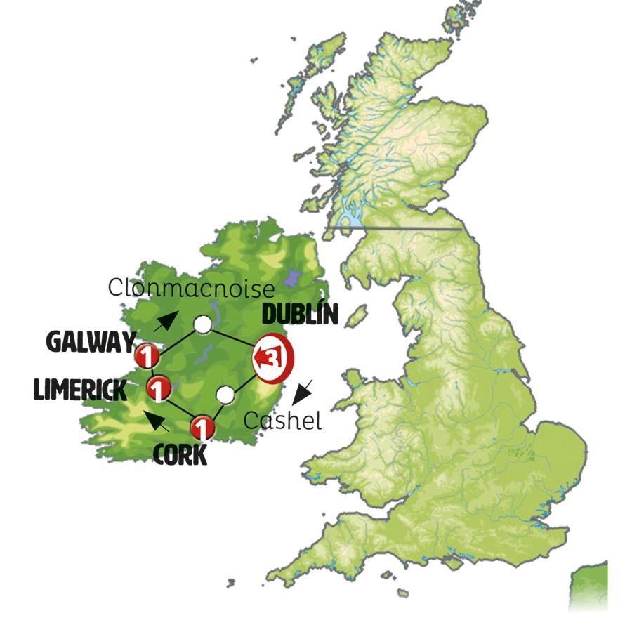 Saldremos hacia KINSALE, paramos junto a Charles Fort admirando las grandes vistas sobre el océano junto a la fortaleza del siglo XVII. Un tiempo en el centro histórico de KINSALE, pueblo marinero, para muchos el más bonito de los pueblos costeros de Irlanda. Tras ello viajamos a KILLARNEY, ciudad turística en el corazón de Irlanda. Tras un tiempo para pasear y almorzar incluimos un romántico paseo en coche de caballos por su PARQUE NACIONAL, entre jardines, junto al lago; llegamos en coche de caballos al Castillo de Ross, maravillosas vistas junto al lago. Aquí incluimos un crucerito en barco entre las magnificas vistas del lago. Tras ello continuamos nuestra ruta; breve parada en ADARE, pequeño pueblo que conserva pintorescas casas de piedra y tejado de paja y ruinas de antigua abadía. Llegada a LIMERICK a media-tarde. Un tiempo en el centro donde podrá conocer su castillo, pasear junto al rio, ir a la catedral o descubrir su centro comercial. Cena incluida.