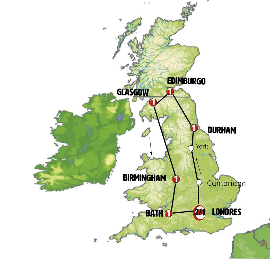 Salimos de Londres hacia el norte de Inglaterra. En CAMBRIDGE disponemos de tiempo para admirar sus hermosos colegios mayores. Seguimos a YORK, su catedral, su ambiente, sus murallas de origen romano, sus activas calles comerciales le dejaran un muy grato recuerdo. Tiempo para pasear. Tras ello seguimos hacia el norte. DURHAM. Llegada a esta hermosa pequeña ciudad medieval llena de vida con su catedral frente al castillo.