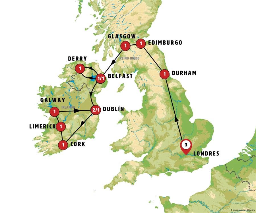 Saldremos hacia el castillo de HILLSBOROUGH (entrada incluida) a las afueras de Belfast, residencia oficial del gobierno en Irlanda del Norte. Esta gran casa georgiana del siglo XVIII cuenta con instalaciones típicas de la familia real. Destacan también su entorno rebosante de color, con sus bosques, praderas silvestres y jardines. Tiempo libre para almorzar. Tras ello continuamos nuestra ruta hacia la Republica de Irlanda. Conocemos en la ruta MONASTERBOICE (entrada incluida), antiguo asentamiento monástico fundado en el siglo V. Destaca por sus altas cruces celtas, especialmente la Cruz de Muiredach, una de las más bellas de Irlanda. El lugar emana una atmósfera espiritual entre ruinas y antiguos sepulcros. Continuamos nuestra ruta hacia DUBLÍN, Llegada a media tarde. Tiempo libre.
