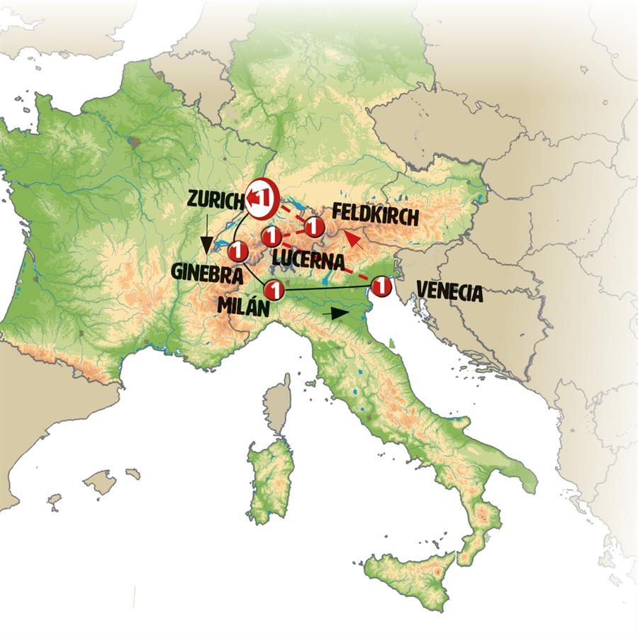 Salimos siguiendo el valle del Po hacia SUIZA. Etapa de gran belleza paisajística entrando en la región de los lagos Alpinos. LUGANO, tiempo para almorzar y pasear por la capital de la región Suiza de habla Italiana, a la orilla del gran lago. Tras la hora del almuerzo cruzamos los Alpes por el túnel de San Gotardo. LUCERNA, llegada a media tarde. Tiempo para conocer esta hermosísima ciudad Suiza a la orilla del lago de los cuatro cantones. ZURICH, llegada al final de la tarde, un paseo junto a su lago.