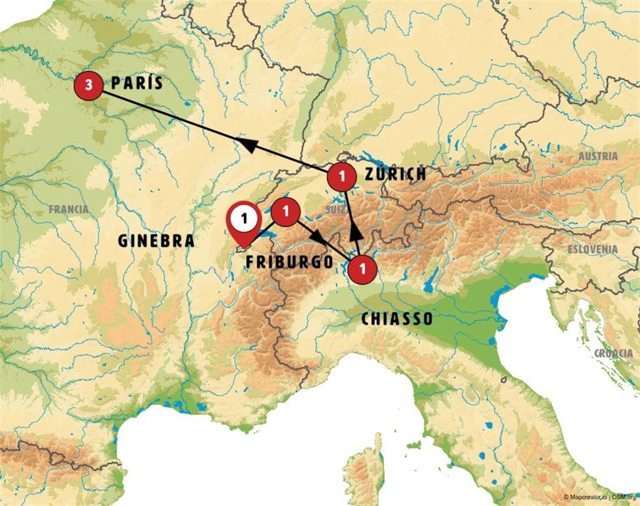 Tras el desayuno, incluimos una visita panorámica de GINEBRA, ciudad situada a orillas del lago Lemán y sede de numerosos organismos internacionales. Visitaremos el Palacio de las Naciones, el encantador Jardín Inglés con su famoso reloj de flores y admiraremos el “Jet d’Eau”, la fuente más alta de Europa. Posteriormente, dispondrán de tiempo libre para pasear y almorzar.Continuaremos bordeando el lago Lemán, entre paisajes de viñedos y montañas nevadas, hasta llegar a LAUSANA, ciudad del oeste de Suiza que alberga la sede del Comité Olímpico Internacional. Haremos una parada en el Parque Olímpico, a orillas del lago, un espacio emblemático dedicado al deporte y la cultura olímpica.Después, nos dirigiremos a la localidad amurallada de GRUYÈRES, conocida mundialmente por su queso. Muy cerca se encuentran algunos de los principales fabricantes de chocolate suizo (como Nestlé, entre otros). Visitaremos la fábrica de chocolate Cailler, ¡con degustación incluida!Continuaremos hacia FRIBURGO, ciudad bilingüe (francés y alemán), con un pintoresco casco antiguo.Nota: En algunas ocasiones, el alojamiento podrá realizarse en una ciudad próxima.