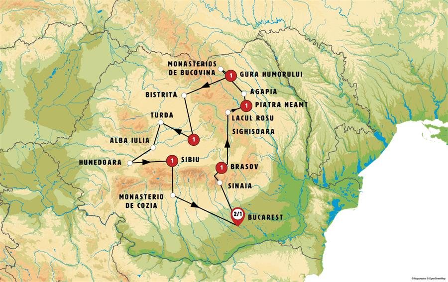 Hoy tenemos una etapa de belleza paisajística viajando hacia Transilvania atravesando los Cárpatos entre bosques y montañas. SINAIA, pasearemos por los jardines del Castillos de Peles, rodeado de bosques y montañas deslumbra por su arquitectura de cuento. Continuación hacia la Fortaleza de BRAN (entrada incluida), del siglo XIV, conocido como el “Castillo de Drácula” combina historia medieval y leyenda, siendo uno de los monumentos más visitados de Rumanía. Tiempo para almorzar. Seguimos a la Fortaleza de RASNOV (entrada incluida) a donde subimos en funicular. La fortaleza, ubicada en lo alto de una colina, fue construida en el siglo XIII por los caballeros teutónicos. Continuamos a BRASOV, ciudad de origen alemán, con un casco medieval lleno de vida, murallas y grandes plazas. Tiempo libre para conocer la ciudad.